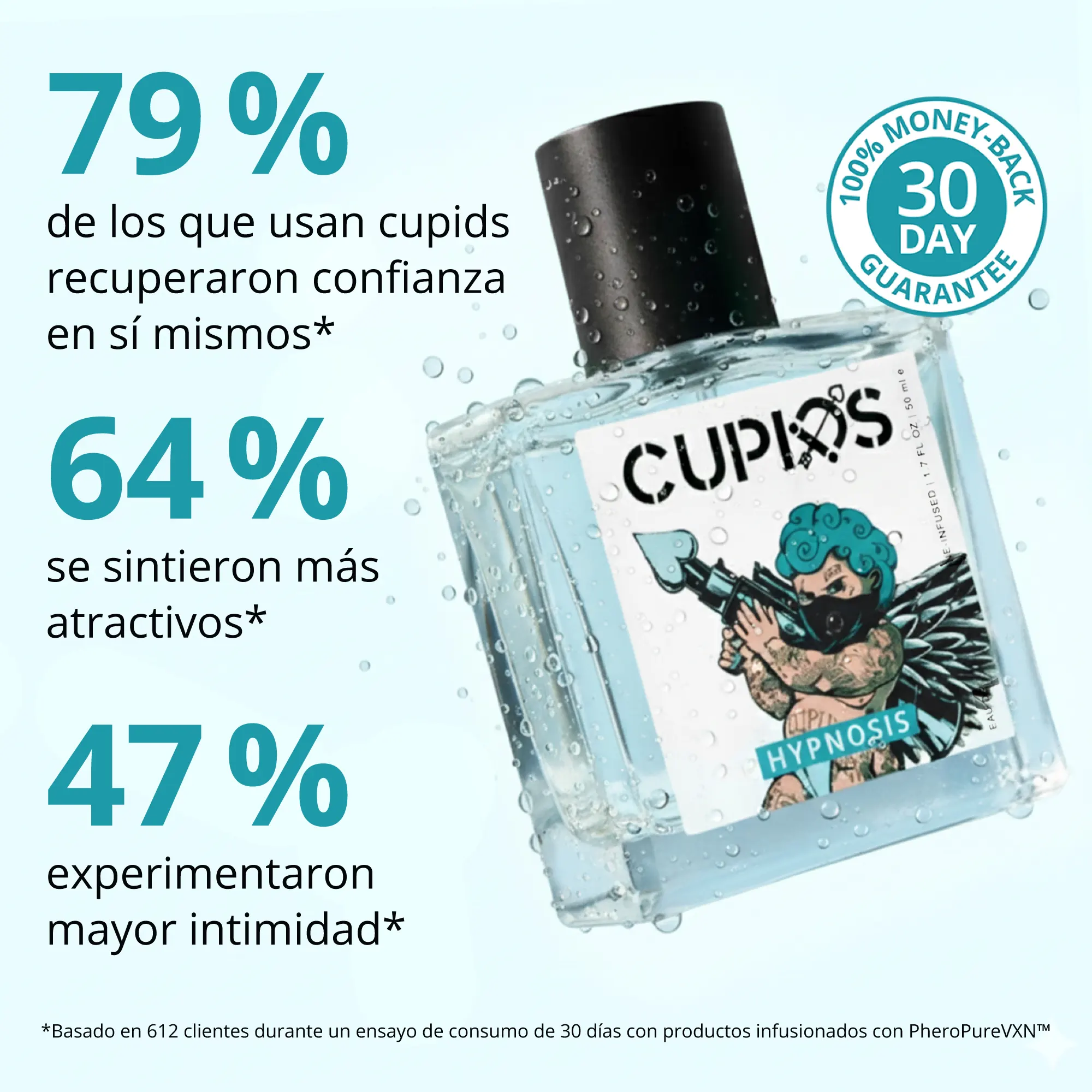 Tus niveles naturales de feromonas pueden no ser suficientes para causar una impresión duradera. La fórmula exclusiva de Cupids, desarrollada por científicos con más de 20 años de experiencia, combina una potente mezcla respaldada por la ciencia que potencia tus feromonas naturales. Con solo unas pocas pulverizaciones, te sentirás más atractivo, más seguro de ti mismo y listo para cautivar a quién quieras.
