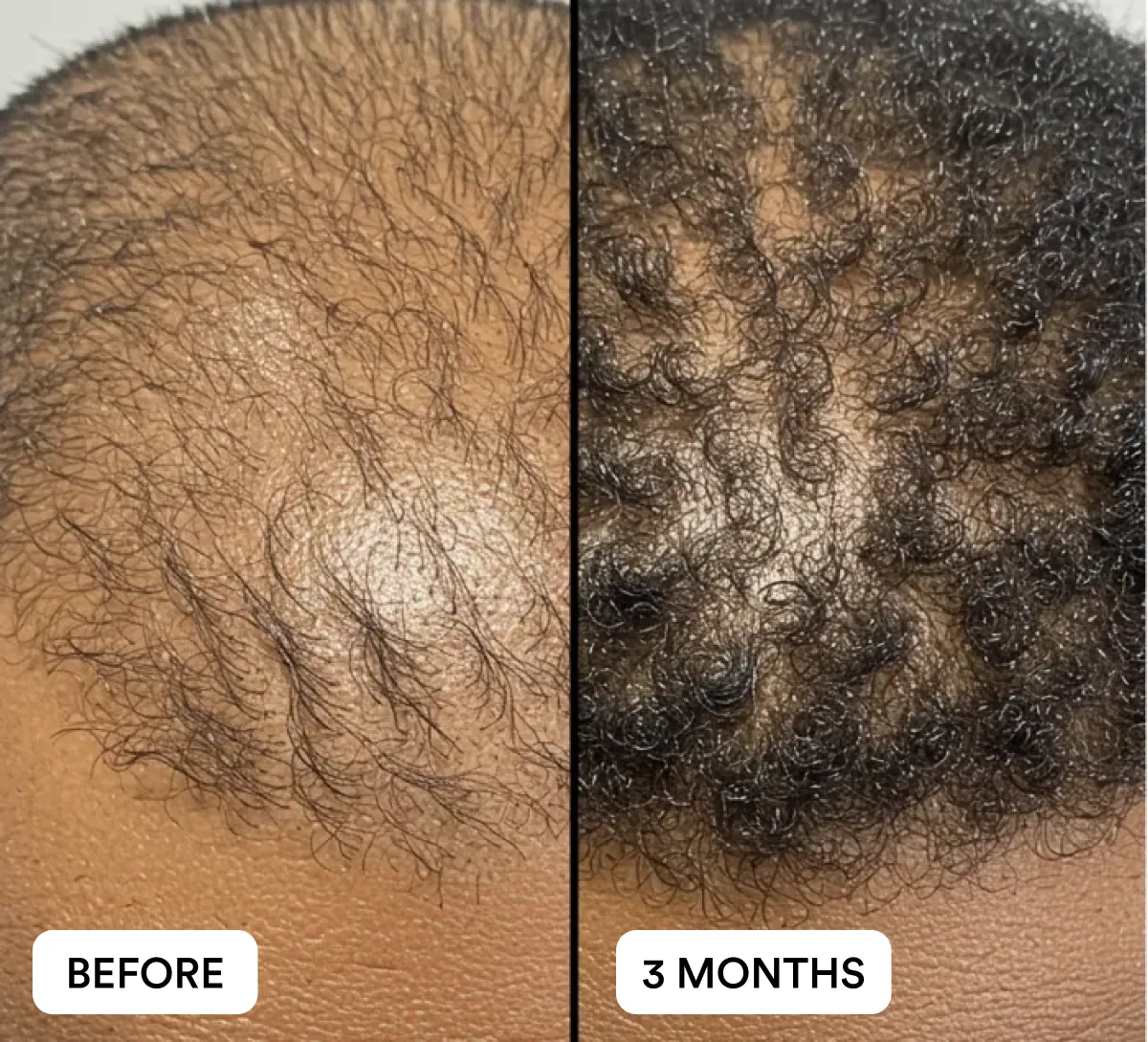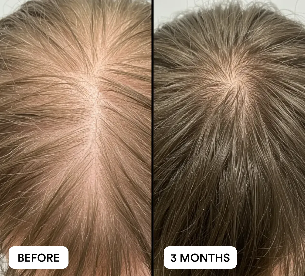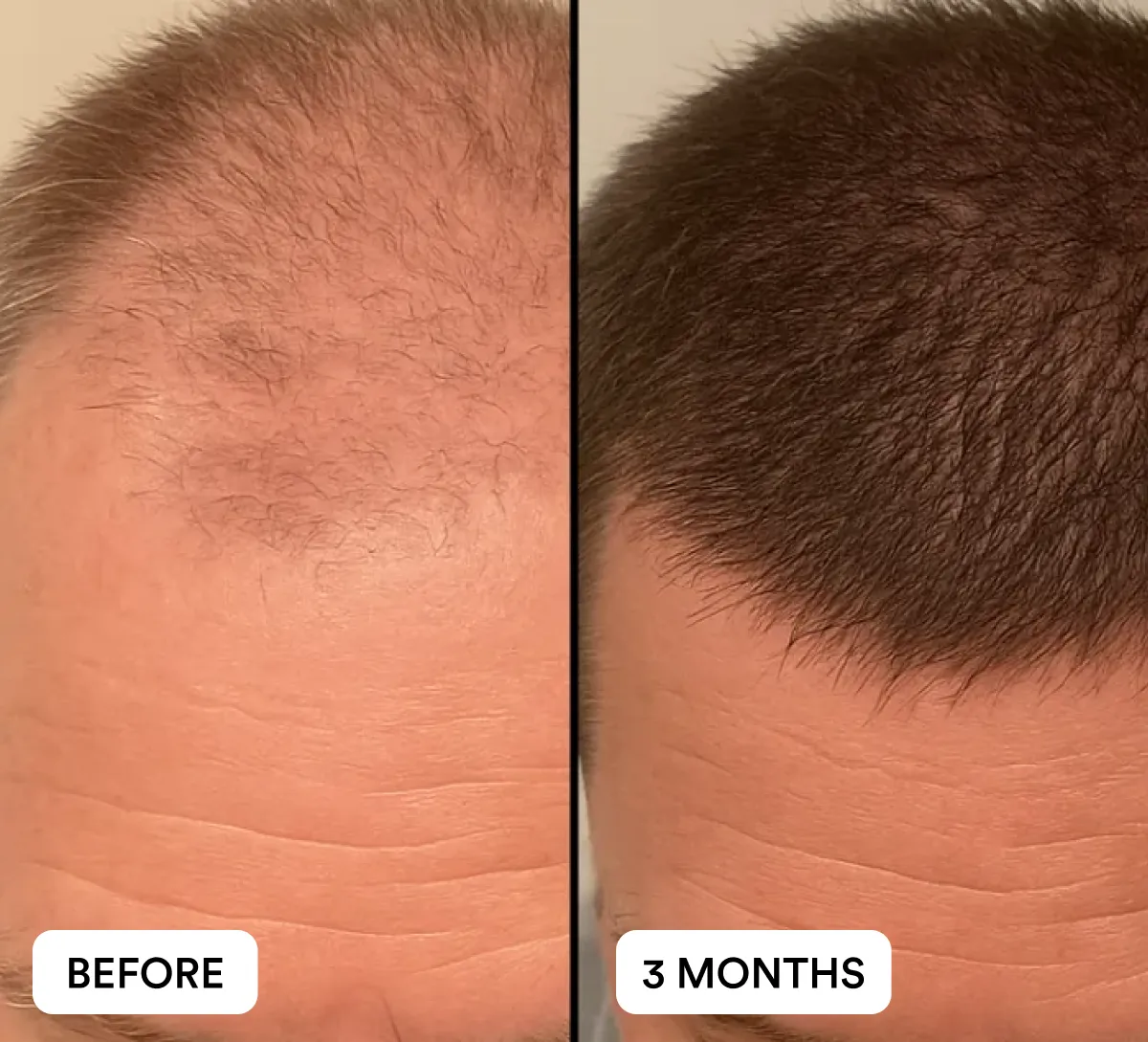 Most users begin noticing less hair fall in the shower or brush within a few weeks. With consistent daily use, visible improvements in density and coverage are commonly reported by Day 90, with best results seen after 3 months of continued use.