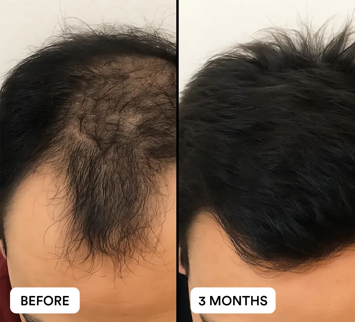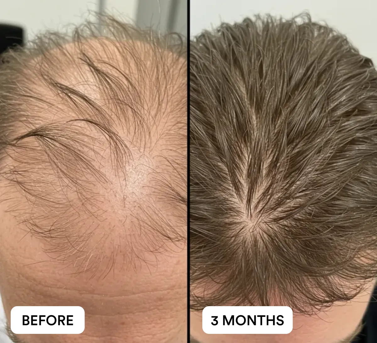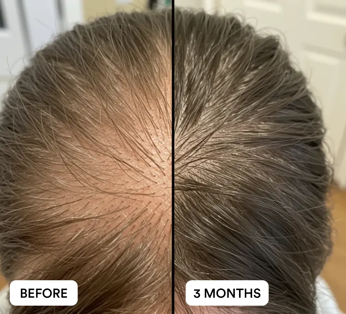 Most users begin noticing less hair fall in the shower or brush within a few weeks. With consistent daily use, visible improvements in density and coverage are commonly reported by Day 90, with best results seen after 3 months of continued use.
